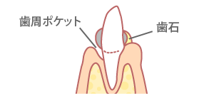 ポケット(歯肉と歯の間のすき間)が広くなり、そこから出血したり膿が出たりして口臭を感じる場合があります。